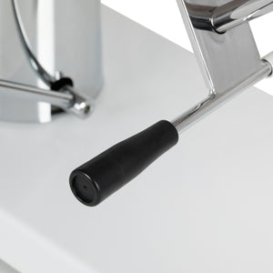 Stolen kan foretage en fuld rotation, hvilket giver dig mulighed for at justere den til den behandling, der udføres i øjeblikket. Aktuatoren har et indbygget låsesystem, så når den valgte position er indstillet, holder udstyret den stabilt. Armlænene garanterer tilstrækkelig støtte, og kan let fjernes om nødvendigt. Disse elementer, delt i to, er bevægelige, så de lægger sig godt, når ryglænets position ændres.
