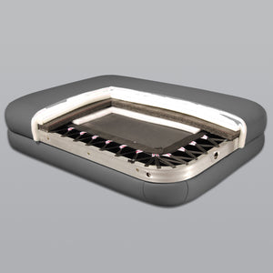 Komfortabel 5 cm tyk bordplade med meget elastisk skum, yderligere beskyttet af beskyttelsesfødder.