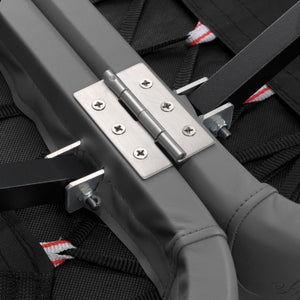 Holdbart 2-hængslet bordpladesystem lavet af rustfrit stål.