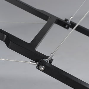 Holdbart 2-hængslet bordpladesystem lavet af rustfrit stål.