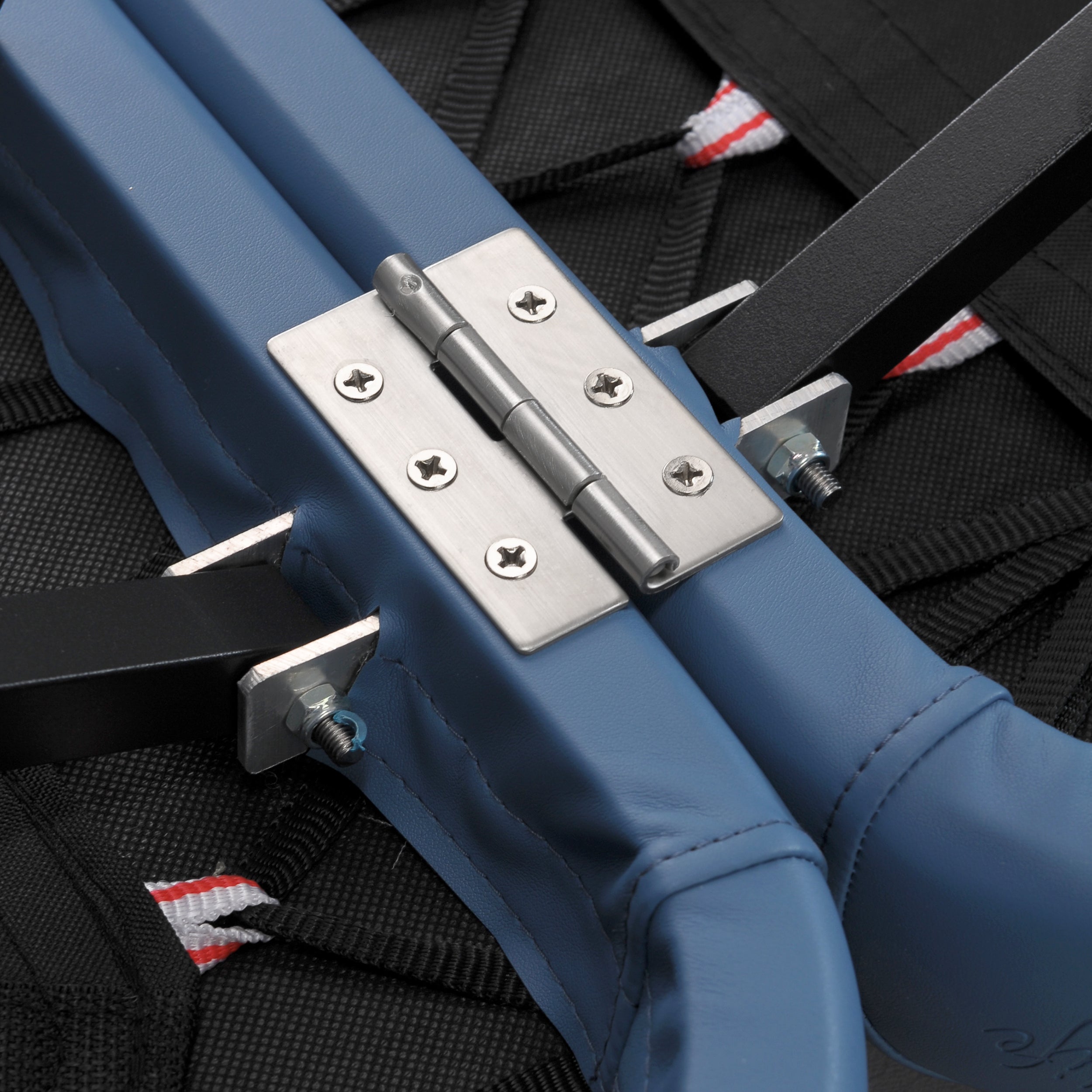 Dobbelt, dobbeltsidet system af låse og monteringshuller til nakkestøtten.