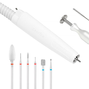 Inkluderet: neglefræserbase, hoved med sugerør, strømkabel, sæt filtre, sæt fræsere, børste til rengøring af hovedet, værktøj til demontering af fræsere, instruktioner.