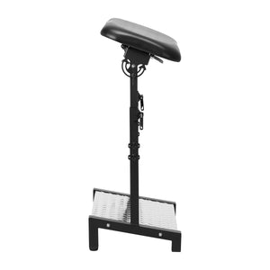 Armlænets højde kan justeres inden for grænserne 72-110 cm, hvilket gør det muligt at tilpasse det til forskellige kunder og garanterer optimal støtte under tatoveringssessionen. Denne model er udstyret med en metalfodstøtte, der hjælper personen, der udfører tatoveringen, med at indtage en ergonomisk position. Funktionen med hældningsjustering fra side til side gør det lettere at justere armlænets position, hvilket giver endnu større komfort under tatovering. En vigtig funktion ved denne model er muligheden for uafhængig højdejustering på begge sider af armlænene, hvilket sikres af et specielt lyserødt glideelement nedenunder. Det brede udvalg af justeringsmuligheder påvirker betydeligt arbejdsergonomien og kundens komfort.
