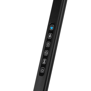 Lysets farve og intensitet kan præcist justeres ved hjælp af berøringspanelet placeret på hovedet eller den medfølgende trådløse fjernbetjening. Justeringen tilbyder 5 niveauer af både lysintensitet og farvetemperatur (kold, neutral, varm). Brugeren kan også vælge det aktive panel – øvre, nedre eller begge på samme tid. Lampen har også en funktion til indstilling af tidsmodus: cyklussen inkluderer 25 minutters belysning, efterfulgt af en 5-minutters pause. Hvis man holder den dedikerede knap nede i længere tid, aktiveres automatisk lampeslukning efter 60 sekunder. Berøringspanelet giver dig mulighed for at indstille Sollys-tilstanden (temperatur 4000 K, intensitet 100%), og fjernbetjeningen giver dig mulighed for at vælge yderligere tilstande: Fokus (temperatur 5500 K, intensitet 80%) og Afslapning (temperatur 3000 K, intensitet 40%).